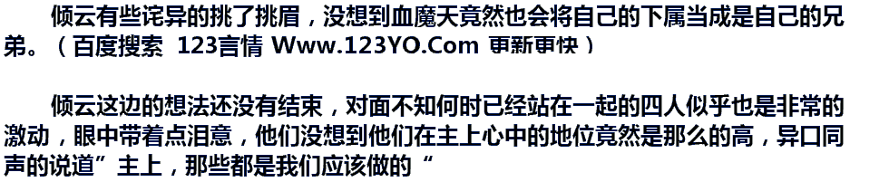 倾云有些诧异的挑了挑眉,没想到血魔天竟然也会将自己的下属当成是自己的兄弟。