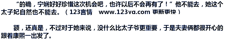 ⊙o⊙…,好吧,他表现的太过了,“乱想什么呢?说出来也不怕你笑话,你知道吗?每次皇阿玛出门可从来都没想着孤!”太子爷有些哀怨道。