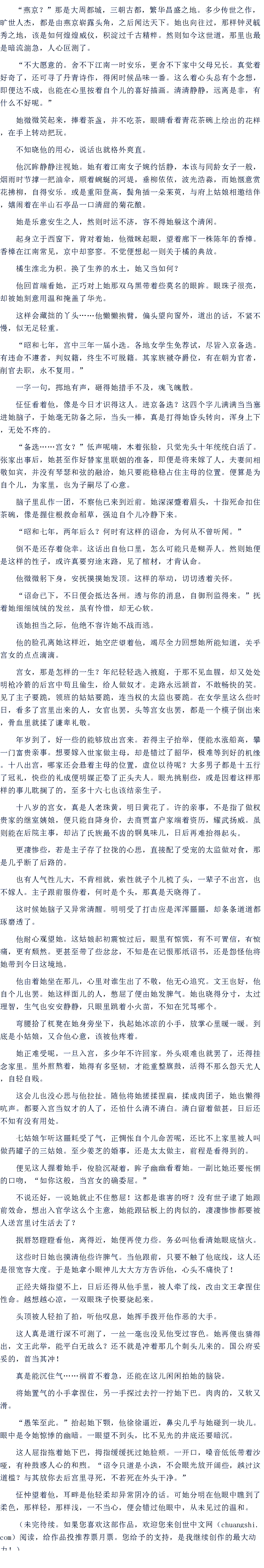 “燕京?”那是大周都城,三朝古都,繁华昌盛之地。多少传世之作,旷世人杰,都是由燕京崭露头角,之后闻达天下。她也向往过,那样钟灵毓秀之地,该是如何煌煌威仪,积淀过千古精粹。然