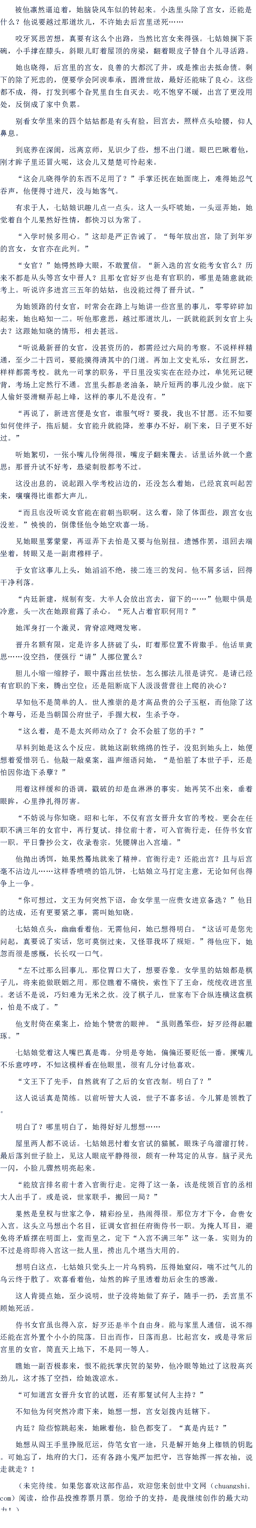 咬牙冥思苦想,真要有这么个出路,当然比宫女来得强。七姑娘