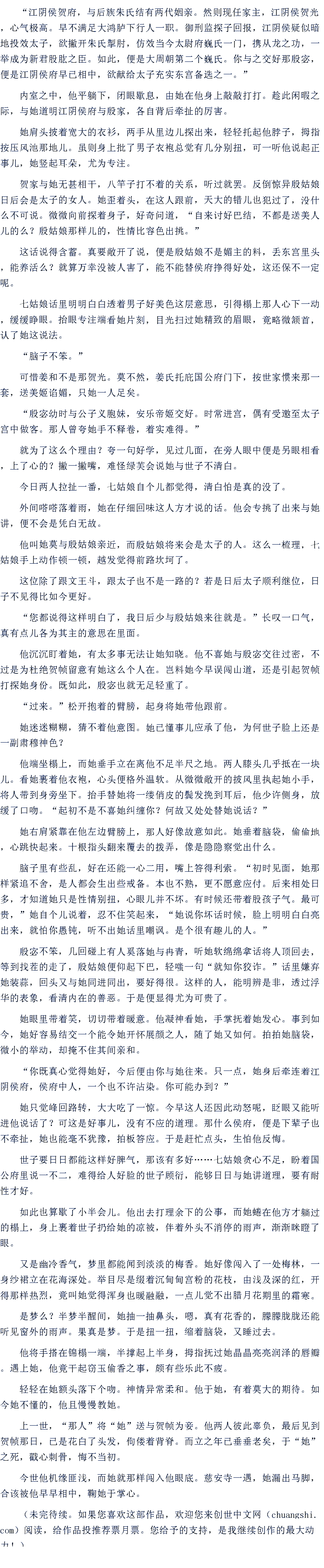 “江阴侯贺府,与后族朱氏结有两代姻亲。然则现任家主,江阴侯贺光,心气极高。早不满足大鸿胪下行人一职。御刑监探子回报,江阴侯疑似暗地投效太子,欲撇开朱氏掣肘,仿效当今太尉府巍