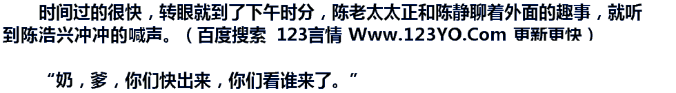 时间过的很快,转眼就到了下午时分,陈老太太正和陈静聊着外面的趣事,就听到陈浩兴冲冲的喊声。